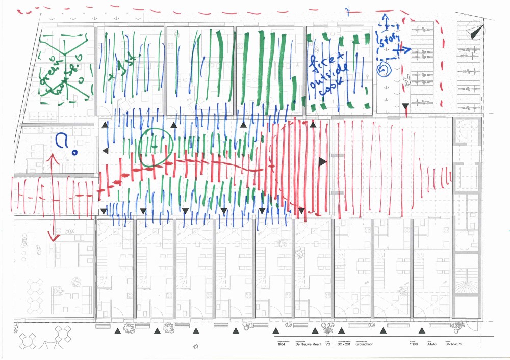 Laten we niet vergeten dat we architecten zijn. Onze belangrijkste focus ligt op co-design. We stellen onze expertise ten dienste van de gemeenschappen waarmee we werken om hen te begeleiden tijdens het hele ontwerpproces, te beginnen met het samen definiëren van het Programma van Eisen (Programma van Eisen), het analyseren van de stedelijke context en bouwregelgeving om potentiële sterke en zwakke punten te ontdekken van het toekomstige gebouw, het achterhalen van de wensen en verlangens van de groep als geheel en van de individuen die de groep vormen, en dit alles vertalen naar het ontwerp. De relatie tussen de zelfstandige en de gemeenschappelijke aspecten van het project/de gemeenschap is altijd een onderwerp dat we grondig onderzoeken. De groep wordt ondersteund bij het nemen van weloverwogen beslissingen over alle aspecten van het project en in de gehele spanne van het project, waaronder bijvoorbeeld de definitie van een duurzaamheidsconcept, de keuze van de optimale technische installaties en van bouwmateriaal, en de mogelijkheid om een deel DIT (do it together, ofwel doe het samen) tijdens de bouw van het project op te nemen. We ondersteunen ook groepen bij het omgaan met alle andere betrokken professionals, zoals structurele en bouwfysische ingenieurs, duurzaamheidsadviseurs, aannemers, enz.